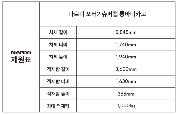 나르미모터스 포터2 슈퍼캡 축연장 차량의 핵심 경쟁력: