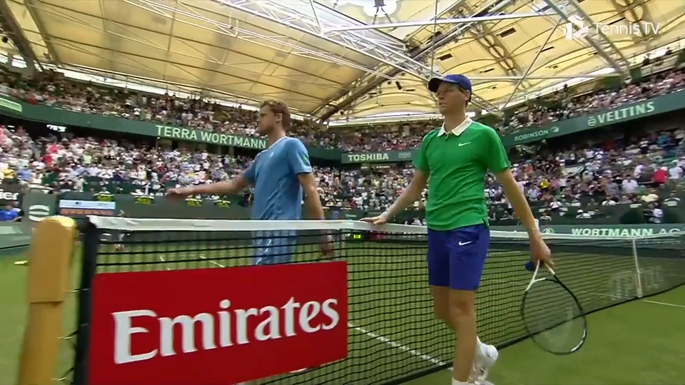 세계 랭킹 1위로 올라선 후 처음으로 잔디 코트에 나선 야닉 시너(Jannik Sinner)는 홈 코트의 예선 통과자 야닉 한프만(Yannick Hanfmann)을 상대로 7-5, 6-3의 깔끔한 승리를 거두며 16강에 안착했습니다. 두 선수 모두 '야닉'이라는 이름을 가졌지만, 철자가 다른 'Jannik'과 'Yannick'의 대결이라는 점이 시작부터 흥미를 더했습니다.
