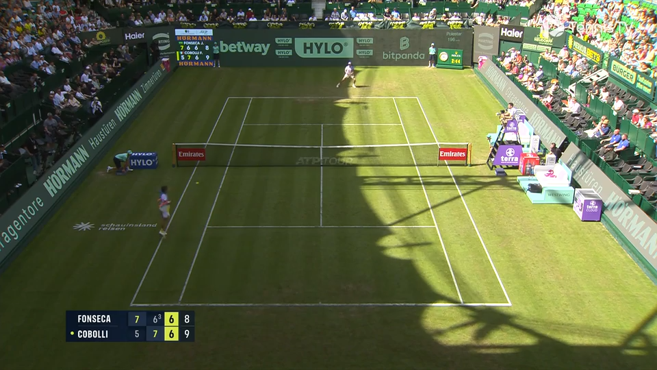 이번 테라 워트만 오픈 32강전에서 가장 드라마틱하고 손에 땀을 쥐게 했던 경기는 플라비오 코볼리와 주앙 폰세카의 대결이었습니다. 잔디 코트 데뷔전을 치른 코볼리가 넥스트젠 ATP 스타 폰세카를 상대로 5-7, 7-6(3), 7-6(8)의 풀세트 타이브레이크 혈투 끝에 승리했습니다. 특히 매치 포인트를 막아내고 거둔 승리라 그 감동은 배가 되었습니다.